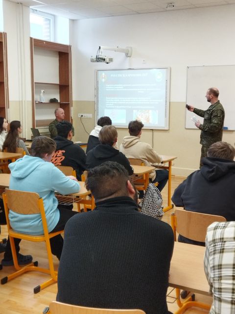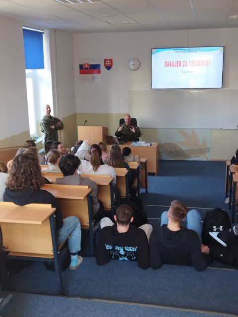 Prezentácia Základne výcviku a mobilizačného doplňovania Martin na stredných školách V súlade s Plánom náčelníka Generálneho štábu OS SR pre regrutáciu a doplňovanie OS SR v rokoch 2023 – 2024 vykonali príslušníci základne major Rastislav Medvec, nadrotmajster Ladislav Rechtorik a rotmajsterka Kamila Rechtoriková 29. marca 2023 prednášky študentom Gymnázia na Kukučínovej ulici v Poprade a Strednej odbornej školy Polytechnickej J. A. Baťu vo Svite pre celkovo 100 študentov stredných škôl. Hlavným cieľom prednášok bolo zvýšiť povedomie mladých ľudí o Ozbrojených silách Slovenskej republiky (ďalej len „OS SR“). Študenti boli oboznámení s podmienkami prijatia a vstupu do OS SR, ale aj o tom ako si podať žiadosť o prijatie do štátnej služby. Ďalej boli oboznámení so základným výcvikom čakateľov a kadetov prípravnej štátnej služby, ako aj pôsobenie v operáciách medzinárodného krízového manažmentu a postavení žien v OS SR. Po prednáškach v rámci diskusie príslušníkov základne veľmi milo prekvapil a potešil obrovský záujem mladých študentov o službu v OS SR.