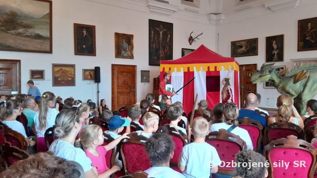 Letný denný detský tábor v ZaVaMD Martin V štvrtom augustovom týždni sa v Základni výcviku a mobilizačného doplňovania konal v poradí už druhý letný denný detský tábor tohto leta. Program detského tábora pripravili animátori, kapitán Jaroslav Leopold Jablonský, nadporučík Maroš Pališin a rotná Zuzana Turiaková. Zdravotnícke zabezpečenie zabezpečovali rotmajsterka Michaela Wieziková, rotmajsterka Zuzana Kubišová a slobodník Jakub Hajas. Denného detského tábora sa zúčastnilo dvadsaťosem detí profesionálnych vojakov a zamestnancov útvarov posádky Martin. Čo doposiaľ predstavovalo najväčší záujem detí o predmetnú aktivitu. Tábor začal vojenským dňom, počas ktorého bola pre deti pripravená rozcvička, ukážky ručných zbraní a vojenskej techniky. Ďalej absolvovali deti praktické zamestnania zo ženijnej, spojovacej a poradovej prípravy. Ďalšie dni deti navštívili starú mincovňu a Múzeum „Líce a rub peňazí“ v Kremnici, Bojnický zámok s atrakciami a Harmaneckú jaskyňu. Posledný deň mali deti možnosť vyšantiť sa v zábavnom parku YETILAND vo Valči. V rámci vyhodnotenia obdŕžali deti diplom o účasti na tábore podpísaný veliteľom Základne výcviku a mobilizačného doplňovania plukovníkom Pavlom Barančíkom, pamätnú medailu a ďalšie upomienkové predmety, ktoré im budú pripomínať túto aktivitu. Tešíme sa na Vás aj o rok.