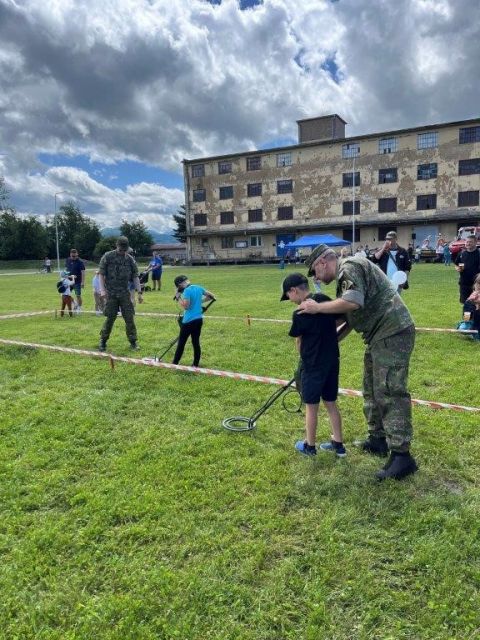 Medzinárodný deň detí v posádke Martin Každoročne, 1. júna oslavujeme Medzinárodný deň detí a preto sa príslušníci posádky Martin rozhodli tento deň zorganizovať bohatý program pre našich najmenších. V priestoroch bývalých vojenských skladov (SIM) v mestskej časti Martin – Priekopa pripravili statické a dynamické ukážky činnosti príslušníkov Ozbrojených síl Slovenskej republiky (ďalej len „OS SR“), ako aj Ozbrojených zborov SR. Obohatiť pripravené aktivity, a tým spríjemniť sviatočný deň detí v rámci spolupráce pomohol aj Okresný úrad mesta Martin, Okresné riaditeľstvo Policajného zboru SR, Mestská polícia Martin, Vojenská polícia, Hasičský a záchranný zbor SR (ďalej len „HaZZ“), 405. opravárenský prápor Martin, 11. mechanizovaný prápor Martin, 42. zásobovacia základňa Martin, 21. samohybný delostrelecký oddiel Michalovce za výrazného prispenia Vojenskej podpornej nadácie. Každá participujúca zložka v priestoroch SIM-u sa snažila zaujať. Pripravené statické ukážky vojenských ručných zbraní, vojenská bojová technika, vojenský výstroj, či maskovacie prostriedky používané v OS SR boli malým oslávencom predvedené profesionálnym a pútavým spôsobom. Neskôr vojaci predviedli aj dynamickú ukážku činnosti mechanizovaného družstva v boji pri kontakte s nepriateľom. Mechanizované družstvo bolo podporené bojovým vozidlom pechoty BVP-1 a streľbou z ručných zbraní s cvičnou muníciou. Ďalej nasledovalo vyhľadávanie mincí pomocou „mínohľadačiek“, príslušníci HaZZ sa predviedli pri hasení horiaceho vozidla a kynológovia zas predviedli svoje odborné zručnosti so svojimi psami. Príslušníci štátnej a mestskej polície ukázali deťom policajné zbrane a techniku používanú pri policajných zásahoch. Celé podujatie v tento deň navštívilo približne 2000 detí so svojimi rodičmi a príbuznými z celého okresu Martin.