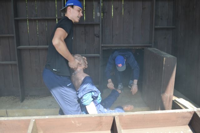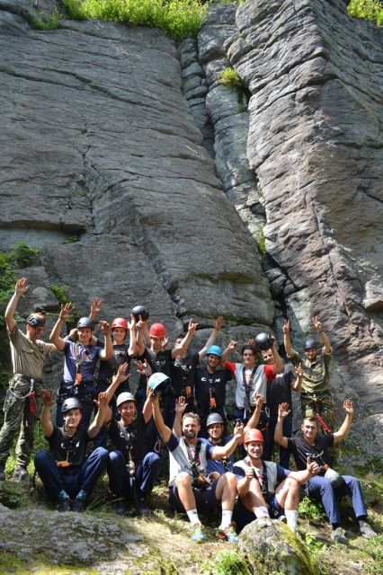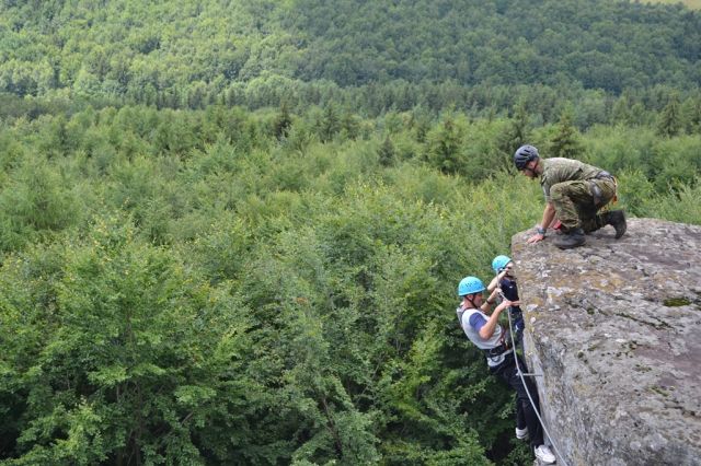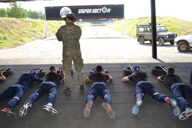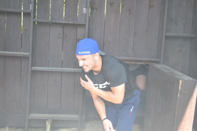 Znova výbuchy, farebný dym a už ich inštruktori vyháňali von zo stanu. Po nástupe poklusom-klus na ihrisko a ranná rozcvička. Druhý deň mali pripravené tri stanoviská, ako tímovo zvládnuť záchranu človeka v úzkych priestoroch tunela, lezenie na Via-ferate na Bralcoch a na záver boli ukážky strelieb a súťaž v streľbe z malorážky.