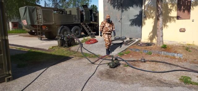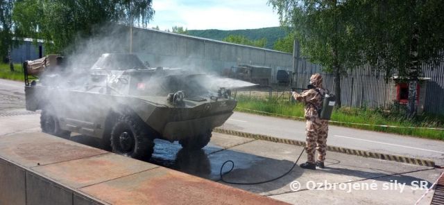 Kurz obslúh dekontaminačných zariadení Sanijet C.1126  HR a  Sanijet C.921 Dekontaminačné zariadenia Sanijet C.1126 HR a Sanijet C.921 sa používajú na špeciálnu dekontamináciu osôb, zbraní, materiálu a techniky. Tieto špeciálne vysokotlakové dekontaminačné zariadenia sú súčasťou dekontaminačných vozidiel - DEKVOZ a súprav na dekontamináciu osôb – SDO 1 M. Kurz bol vykonaný v dobe od 23. - 27. mája 2022 a jeho cieľom bolo naučiť prípravu a možnosti použitia dekontaminačného zariadenia a taktiež prakticky precvičiť postupy dekontaminácie jednotlivých druhov techniky pre jednotlivé osádky. Absolvovaním kurzu frekventanti získali nové zručnosti a spôsobilosti v dekontaminácií techniky a materiálu podľa štandardov NATO. Kurz prebiehal pod odborným riadením inštruktorov Základne výcviku a mobilizačného doplňovania Martin nadrotmajstrom Tomášom Niňajom a rotmajstrom Róbertom Pardusom v priestoroch 103. práporu RCHBO Rožňava, kde ho úspešne absolvovalo 7 PrV z PS OS SR.
