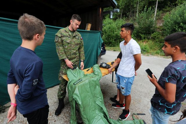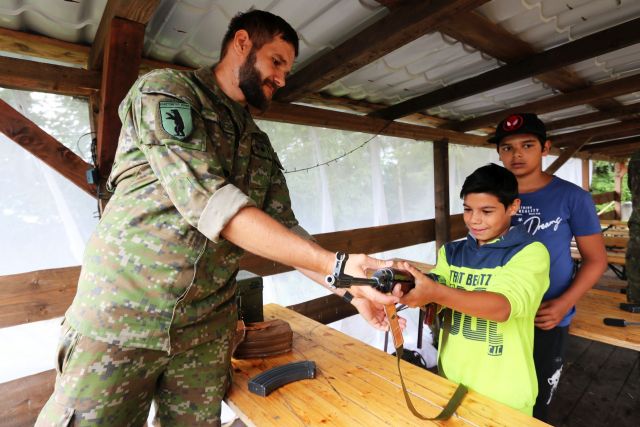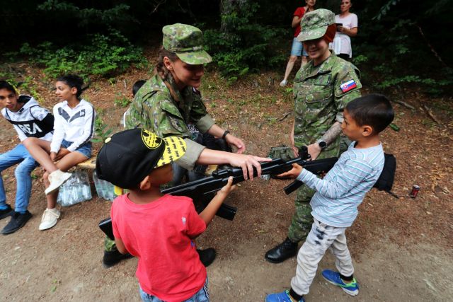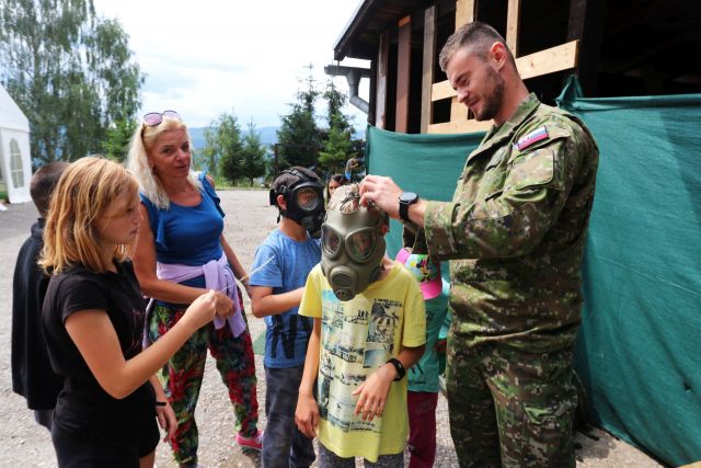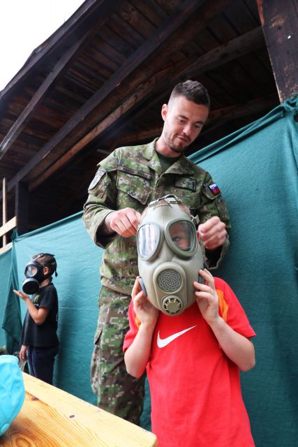 Rožňavskí vojaci pre deti z domovov Príslušníci oboch rožňavských útvarov: 103. práporu radiačnej, chemickej a biologickej ochrany a 54. raketometného oddielu spestrili Letný tábor pre chovancov z Centier pre detí a rodiny (CDR) najmä z oblasti stredného Slovenska pestrými ukážkami zo svojej činnosti. Vedúci vyčlenenej skupiny vojakov rotmajster Vlastimil Sečkár, ktorý ešte minulý týždeň plnil spoločne so svojimi kolegami chemikmi úlohy vyvedenia v Centre výcviku Lešť vysvetľuje, že pre deti pripravili celkom päť pracovísk v okolí Hotela Vŕšky nad Závadkou nad Hronom v podhorí Nízkych Tatier. „ Na nich sme im postupne predstavili zbrane, ktoré naši vojaci používajú, ale aj prístroje na pozorovanie terénu, rôzne typy spojovacích prostriedkov, ochranné masky a protichemický oblek. Naši inštruktori si s nimi precvičili základné prvky sebaobrany a vôbec zručnosti. Všetci si vyskúšali svoju pohyblivosť, postreh, ale aj rýchlosť a obratnosť pri zdolávaní nástrah improvizovanej prekážkovej dráhy v lese. Som rád, že sa im jednotlivé disciplíny páčili.“ Vedúca tábora, ktorý trvá prvých desať júlových dní Milena Kapustová je vďačná vojakom oboch rožňavských útvarov za vítané spestrenie tábora. Je určený pre deti z CDR z Banskej Bystrice, Tornale, Dobšinej, Podolínca a Hnúšte od 6 do 18 rokov. „Tábory organizujeme vždy v zaujímavom prostredí, ktoré je iné, ako to v ktorom trávia celý rok a zároveň sa navzájom stretnú a spoznajú deti a vychovávatelia z rôznych domovov. Každý rok sa tešia na vojakov, ale aj policajtov či hasičov,“ hovorí vedúca tábora.