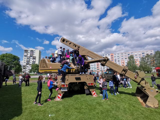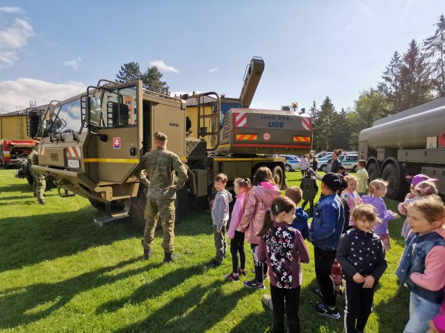 Máme za sebou úspešný deň detí s políciou, ozbrojenými a záchrannými zložkami na ZŠ s MŠ Veľká Okružná v Partizánskom a na letisku Prievidza, na ktoré sme veľmi radi prijali pozvanie. 43.zásobovacia základňa pripravila prezentáciu výstroja vojaka, techniku Landrover Defender 110, Tatra 815-7 6x6 UDS-214.41 a Tatra 815-7 8x8 cisterna 1.R. Zatiaľ čo v Partizánskom sme sa spolu s hasičmi, políciou a zdravotnými záchranármi venovali žiakom základnej školy, na Prievidzskom letisku prítomnosť mnohých ďalších zložiek prilákala niekoľko tisíc návštevníkov.