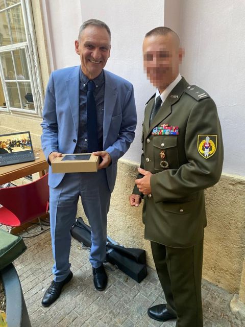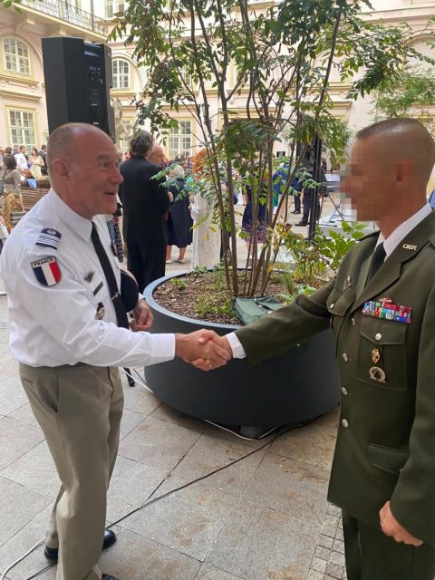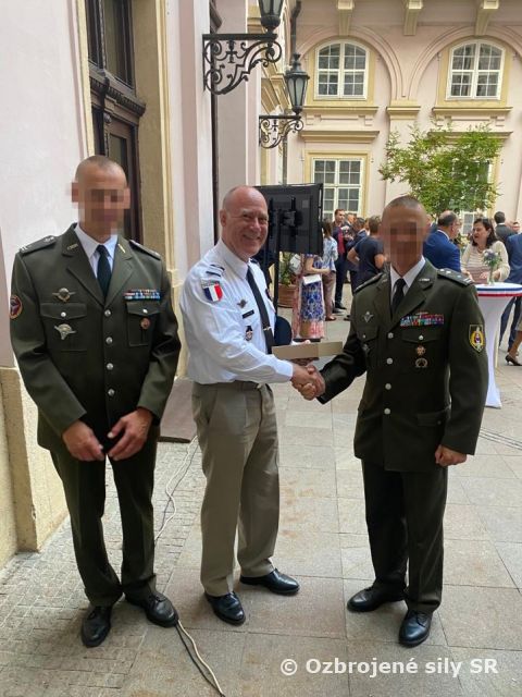 On the occasion of this great French holiday, the French Embassy organized a reception to which members of the Special Operations Forces were also invited. On behalf of the Commander of the 5th Special Forces Regiment (5th SFR), Colonel Peter Žochňák, they handed over to the French Military Attaché of Defense Colonel Jean-Charles Peltier and the Press Attaché of the Embassy of the French Republic in Slovakia Mr. Didier Rogasik (both gentlemen visited the 5th SFR in October 2022) a memorial plaque on the occasion of the 30th anniversary of the Regiment.