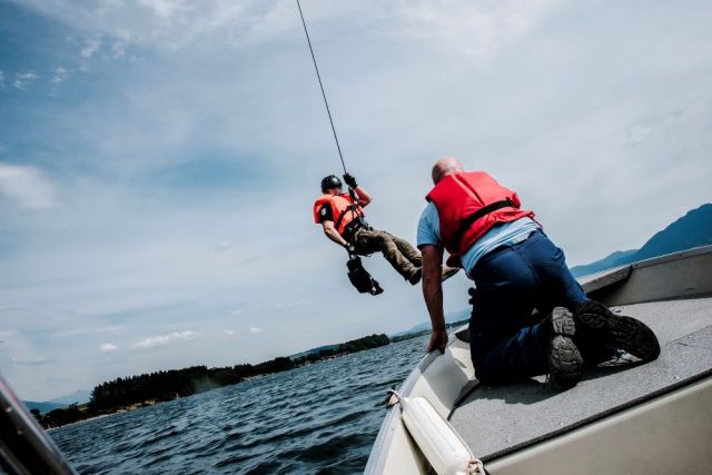 The exercise was supported by helicopters from the Aviation Department of the Ministry of Interior of the Slovak Republic, and was divided into two training days. On the first day, the Mountain Rescue Service joined the training forces, supporting the activity. Throughout the day, participants practiced alternative methods of both - water and underwater insertion, while the Fire and Rescue Brigade of the Slovak Republic supervised and ensured the safety and potential rescue of the trainees.