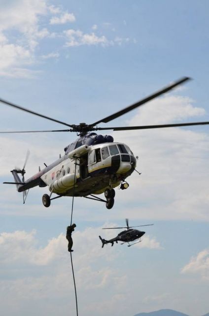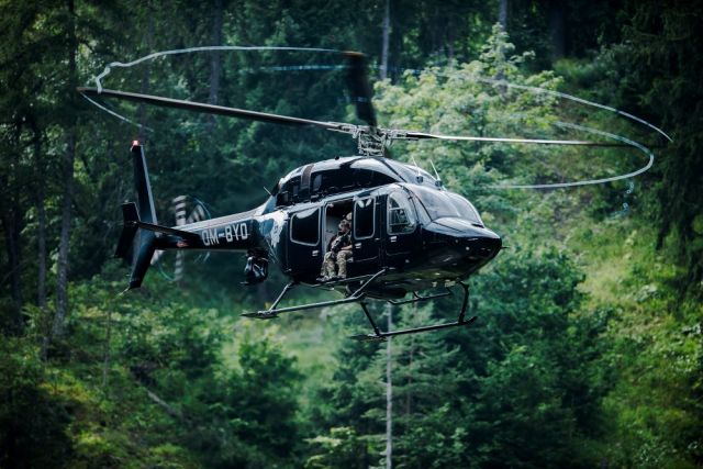 The second day was exclusively reserved for the Armed Forces, with addition of the members of the National Criminal Agency (NAKA) and the Special Purpose Unit of the Presidium of the Police of the Slovak Republic, „Lynx“. In the shooting range area Jasná, members of the Žilina PPU created three complex shooting scenarios. Before the trainees could engage in these scenarios, they had to successfully execute shooting exercises from a Bell 429 helicopter, using assault rifles and shotguns. This simulation aimed to replicate the act of stopping a fleeing vehicle by targeting its engine block.