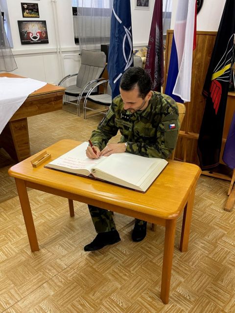The distinguished visit was welcomed by the Commander of the 5th psu, Colonel Peter Žochňák with his deputy Major Kornel Kánik and the Commanding NCO, Staff Sergeant Major Roman Kostúrik. The delegation discussed the topic of development of cooperation, then was briefed on the history of the regiment and its structure. At the end of the visit there was an entry in the chronicle of the unit and a meeting in the regiment's club.