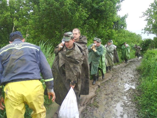 Počas povodňovej situácie na strednom Slovensku už v noci 1.6.2010 bola vyslaná prvá záchranná skupina profesionálnych vojakov do oblasti Neresnica pri Zvolene, kde sa nebezpečne dvíhala hladina rieky Neresnica. Následne po zhoršení poveternostných podmienok a neustálych dažďoch sa povodňová situácia začala vyhrocovať na ďalších riekach južného a stredného Slovenska. Záchranné skupiny v dňoch 1. – 3. 6. 2010 v pravidelných intervaloch neustále pomáhali obyvateľom postihnutých území v počte 127 vojakov. Príslušníci veliteľstva brigády, prRLPs a roty podpory velenia, ktoré majú sídlo priamo vo Zvolene zasahovali v obci Prša. Ťažkú situáciu riešil veliteľ 3. roty prRLPs v Ožďanoch, ktorého jednotka pomáhala v obciach Pavlovce, Cakov, obec Gemer, Jesenské, Rimavská Seč, Veľký Plh, Vádor, Bátka, Rakytník, Uzovská Panica, Gemerská Panica. Vojaci tejto jednotky sa rozhodli odmenu, ktorú mali dostať za pomoc pri povodniach venovať rodinám zaplavených obcí – spolu sa jednalo sumu 1 200 eur. V Trstenej zasahovali príslušníci 4. roty prRLPs Močiar.
