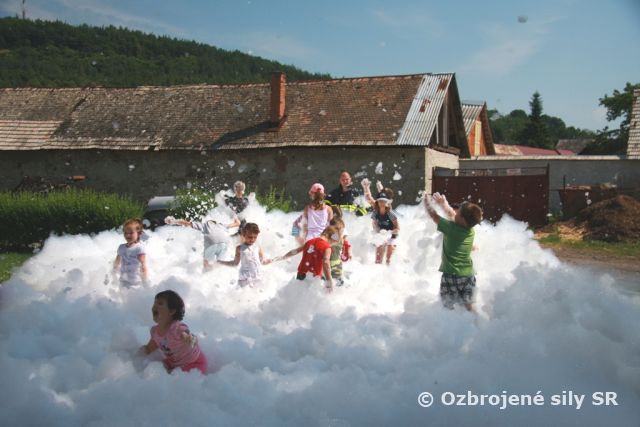 Poslední sa prezentovali členovia vojenskej hasičskej jednotky rtm. Róbert Baniar, des. Martin Michálek, slob. Roman Kolenič, slob. Rastislav Jankovič, slob. Radovan Tišler. Po úspešnom predvedení ochranného odevu Izotemp, deti s asistenciou PrV hasili založený oheň a skúšali si hasičskú prilbu. Na záver sa vyšantili v tradične obľúbenej bodke všetkých ukážok, „pene“ PYROCOOL.