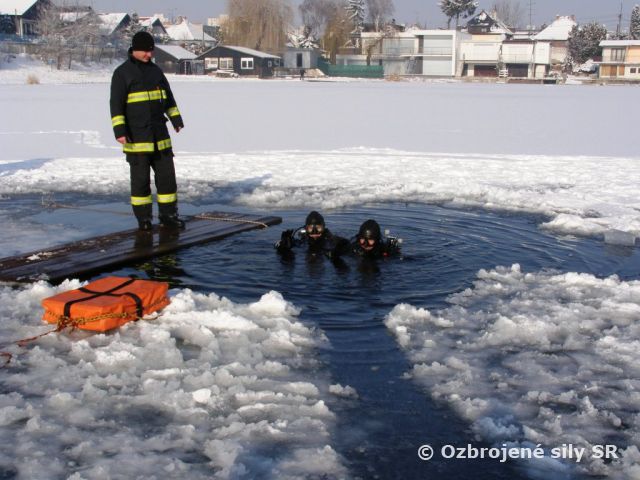 Prvou dvojicou bol minister vnútra SR Daniel Lipšic s hasičským inštruktorom potápania. Bez problémov sa zanorili a po preplávaní predpísaných vzdialeností sa vynorili v mieste vstupu do vody. Ľad mal hrúbku 12 cm, teplota vzduchu bola -5 °C, teplota vody 1°C a pokrývka snehu zabraňovala prechodu svetla pod ľad, čo ešte znižovalo viditeľnosť v relatívne zakalenej vode. Miestami bola viditeľnosť iba jeden meter. Vojaci roty podpory velenia, 5. ženijnej odtarasovacej roty a 6. ženijnej roty zvládli celú akciu na „výbornú“, za čo im patrí uznanie. Prišli s dobre pripraveným materiálom a profesionálnym prístupom.