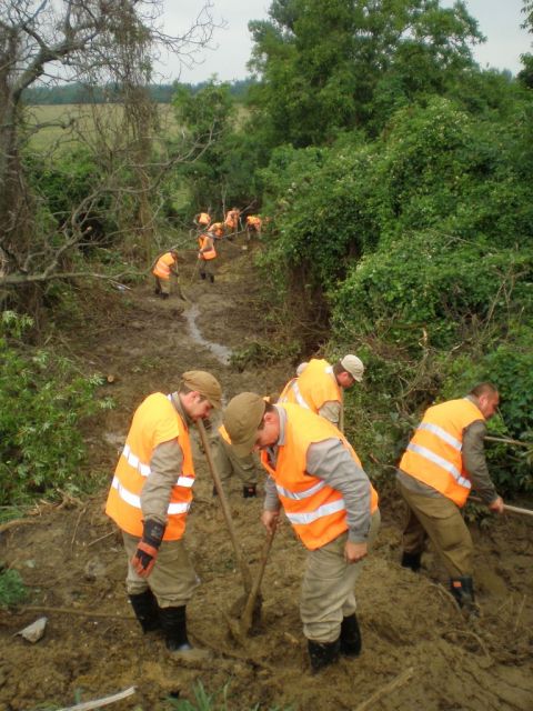 Vyčlenení vojaci upravovali podmočený terén pomocou lopát, krompáčov a sekier tak, aby dažďová voda mohla zo svahu rýchlejšie odtekať a nespôsobovala ďalšie zosuvy pôdy, ktoré ohrozujú príbytky obyvateľov obce.