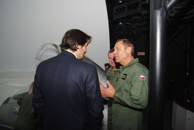 Minister spravodlivosti si následne vyskúšal svoj prvý simulovaný let na leteckom trenažéri MiG-29. Po hladkom pristátí sa ďalej oboznámili s pohotovostným systémom vzdušných síl priamo v jeho priestoroch. Keďže v tomto období prebieha vo vzdušných silách najväčšie letecké cvičenie MACE XIII a práve z tejto leteckej základne pôsobia zahraniční účastníci cvičenia so svojou leteckou technikou, mohli si vládni predstavitelia zblízka prezrieť najmodernejšie lietadlo vzdušných síl Francúzska - RAFALE. Zároveň mali možnosť zhliadnuť aj činnosť príslušníkov tejto základne a účastníkov cvičenia pri príprave a prevádzke leteckej techniky pri plnení jeho úloh. Na záver návštevy si ministri ešte prezreli aj priestory bojovej a výcvikovej letky.