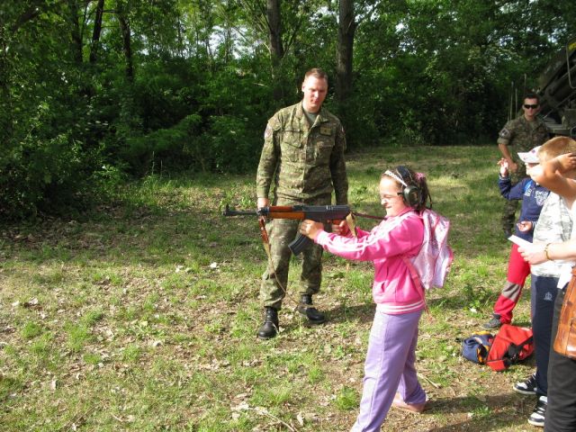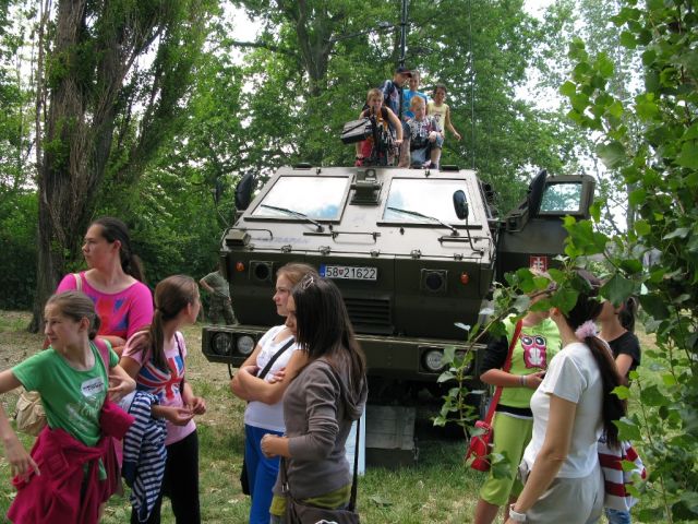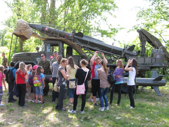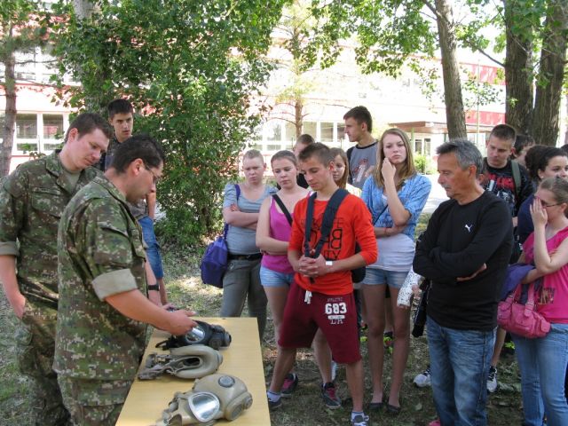 Imitovanie požiaru mali na svedomí „podpaľači“ z nitrianskej protilietadlovej raketovej brigády pod vedením útvarového pyrotechnika nadporučíka Ľudovíta Varga-Korytára, ktorý si pre deti pripravil ukážky imitačnej munície. Profesionálni vojaci pripravili pre deti ukážky techniky AVS Astra PVO Tatrapan, nabíjacieho prepravníka 2T7, ukážku odpaľovacieho zariadenia IGLA, ručných zbraní samopal vz. 58 a pištoľ vz. 82, modulárneho systému a prostriedkov individuálnej ochrany jednotlivca. Veliaci poddôstojník nadrotmajster František Chlepko priblížil žiakom čo všetko obnáša vojenský život. Svoju prednášku doplnil o zaujímavé videá z výcviku rakeťákov na Lešti, posádkovom cvičisku Kolíňanský vrch, strelieb jednotiek IGLA na Záhorí a z prípravy a výcviku príslušníkov zaradených do mierovej misie OSN UNFICYP.