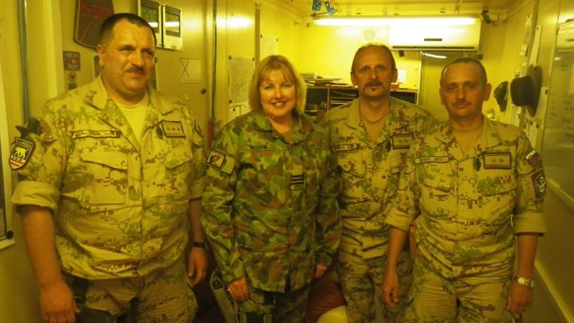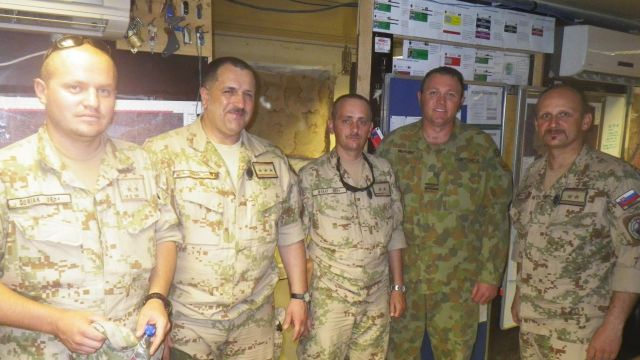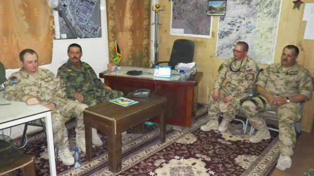Veliteľ brigády v sprievode odchádzajúceho veliteľa NSE (National Support Element) podplukovníka Róberta Plávku a jeho nástupcu podplukovníka Mariána Makaya sa priamo na strážnych pozíciách presvedčil o náročnej a vysoko zodpovednej práci slovenských vojakov v tejto vojenskej operácii na vojenskej základni v Tarin Kowte.