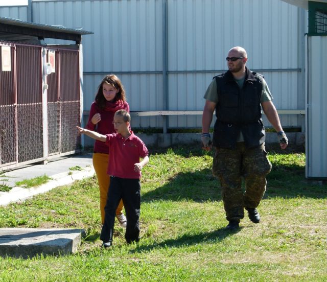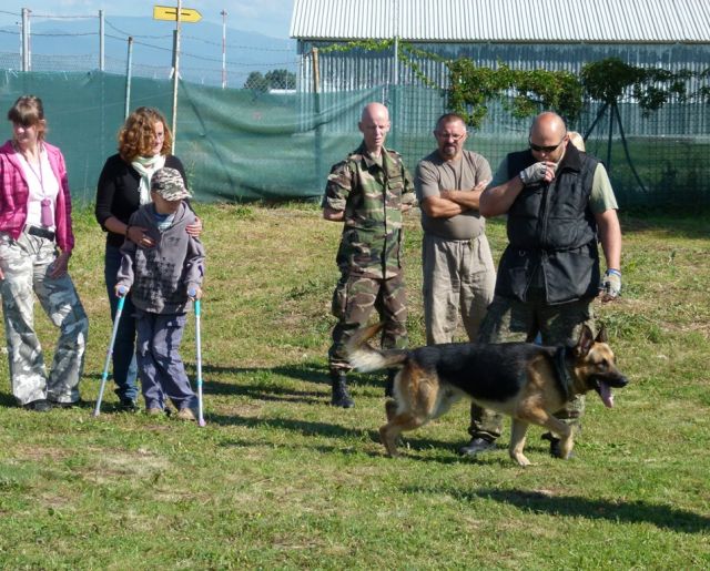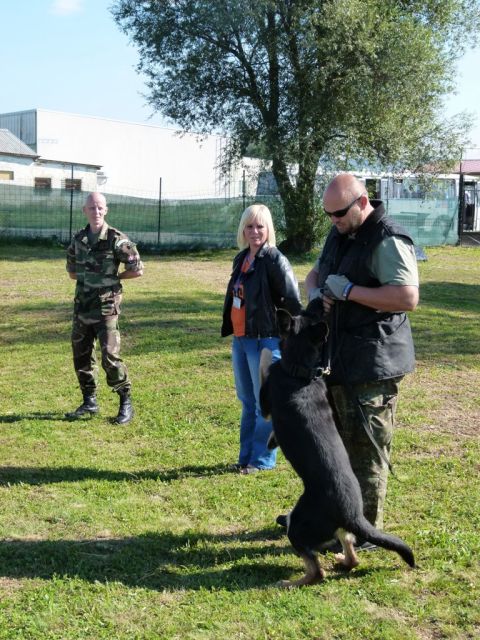 Program exkurzie začal ako zvyčajne ukážkou vojenskej kynológie v priestoroch psinca. Kapitán Peter Šoltés oboznámil deti s prácou psovodov a služobných psov, ako aj ich úlohou v priestore leteckej základne Sliač. Následne mohli vidieť poslušnosť psíkov počas bezchybného plnenia povelov a činnosť pri zadržaní narušiteľa. V závere kynologickej ukážky si deti mohli vyskúšať aj ringo oblek a taktiež pohladkať psíka z čoho mali obrovskú radosť.