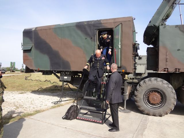 Po krátkom privítaní delegácie, oboznámení s históriou úlohami, poslaním a štruktúrou brigády si delegácia mala možnosť pozrieť zaujatie palebného postavenia a rozvinutie kompletu S-300 PMU do bojovej zostavy pod velením veliteľa skupiny podplukovníka Petra Janotu. Počas ukážky tváre príslušníkov Národnej gardy štátu Indiana prezrádzali veľké nadšenie a obdiv nielen z PLRK S-300, ale aj profesionality našich vojakov.