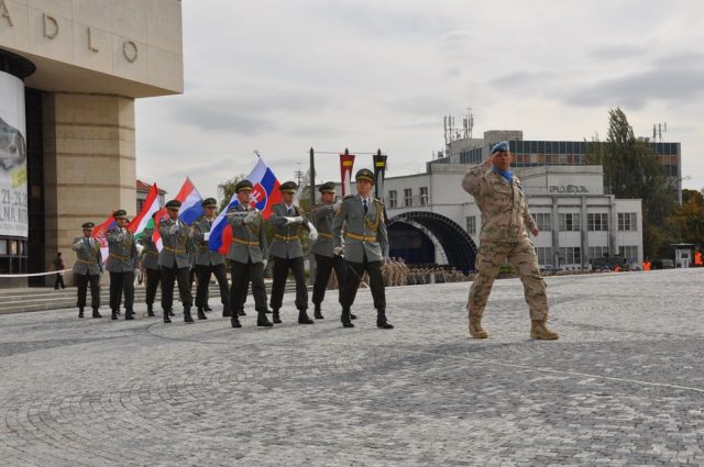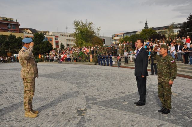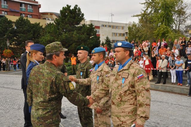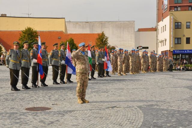Svätoplukovo námestie v Nitre sa dnes, 27.9.2012, stalo dejiskom slávnostného aktu privítania nielen príslušníkov Ozbrojených síl Slovenskej republiky (OS SR) po splnení úloh v mierovej operácii UNFICYP a pozorovateľskej misie OSN UNTSO, ale aj príslušníkov zahraničných ozbrojených síl z Maďarska, Srbska a Chorvátska.