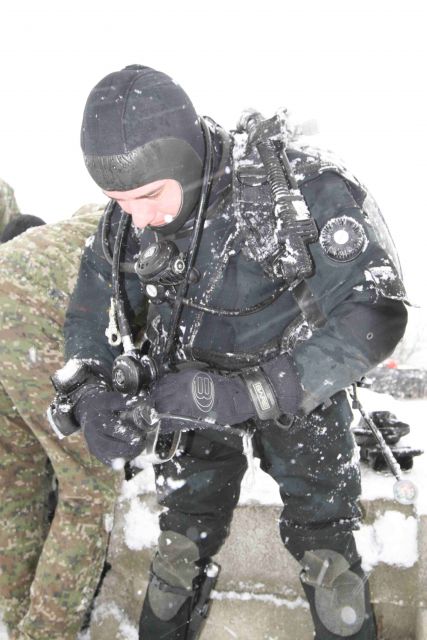 Plnenie úloh vo vode znepríjemňovalo prudké sneženie a vietor. Podľa riadiaceho zamestnania nadporučíka Marka Vlnku sa potápači ponárali do hĺbky približne 8 metrov. Uskutočňovali tam prieskumné i špeciálne potápačské úlohy. Okrem iného hľadali a následne odstránili z potopeného motorového vozidla mínu.