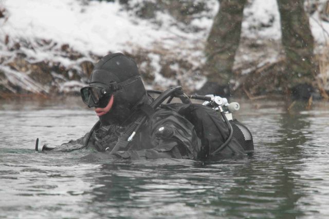 Potápači seredského ženijného práporu, ktorí končia etapu výcviku zimné potápanie na bagrovisku Čierna Voda privítali medzi sebou aj tak trochu netradičného kolegu. Do vody, ktorá mala teplotu dva stupne s nimi šiel aj veliteľ pozemných síl brigádny generál Ondřej Novosad, ktorý pôvodne začínal svoju vojenskú kariéru ako ženista a dodnes je aktívny potápač.