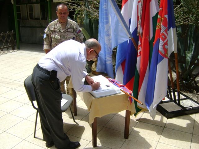 Na záver návštevy sa Boulos Paul Aghadjanian zapísal do kroniky a s veliteľom Sektoru 4 sa presunuli do kempu Štefana Nemjania a St. Istvána, kde sú taktiež ubytovacie zariadenia, ktoré si vyžadujú nevyhnutnú opravu.