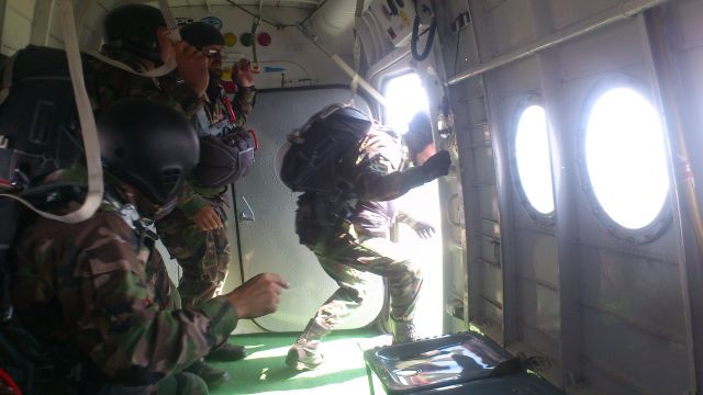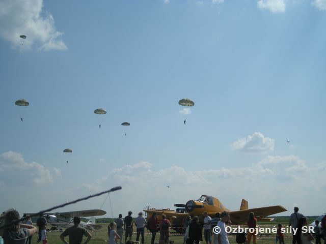 Príslušníci padákovej, výsadkovej a záchrannej služby vzdušných síl v sobotu 29. júna 2013 reprezentovali Ozbrojené sily Slovenskej republiky na leteckých dňoch v Nových zámkoch.
