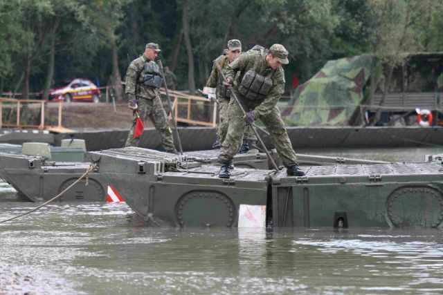 Medzinárodné veliteľsko-štábne cvičenie mnohonárodného ženijného práporu TISA Blonde Avalanche 2013, za účasti vojakov z Maďarska, Rumunska, Ukrajiny a Slovenska pokračuje na vodnom cvičisku Váh v Seredi a na vodnej ploche Ontário.