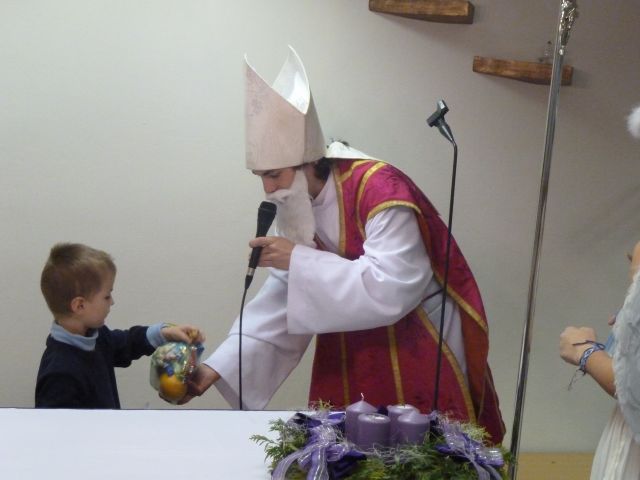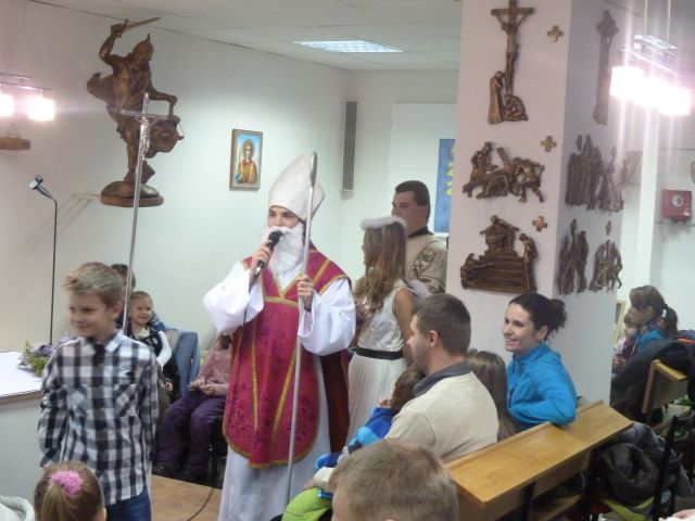 Pred jeho príchodom si nedočkavé deti vypočuli z úst tety Majky prekrásnu rozprávku o Anjelikovi Striebrovláskovi a potom prišla tak dlho očakávaná chvíľa. Do kaplnky vstúpil Mikuláš so svojimi pomocníkmi. Nedočkavé očká našich ratolestí upreli svoj pohľad už len na jednu osobu a úpenlivo čakali, kedy pridú na rad, aby sa mohli pred Mikulášom pochváliť peknou básničkou, pesničkou alebo len tak byť v jeho blízkosti. Za ich nádherné výkony a presvedčenie, že počúvali celý rok, ich Mikuláš spoju s anjelom odmenili sladkou nádielkou.