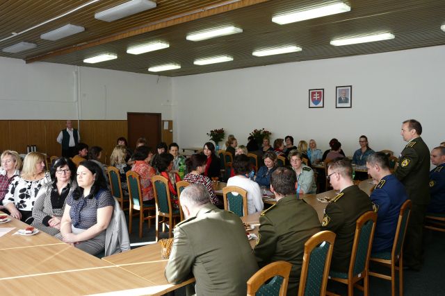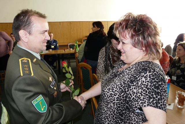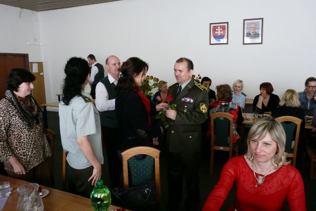 Veliteľ plukovník gšt. Ján Žarnovický odovzdal kytice prítomným dámam a zaželal k sviatku šťastie, lásku a mnoho pracovných úspechov v práci.