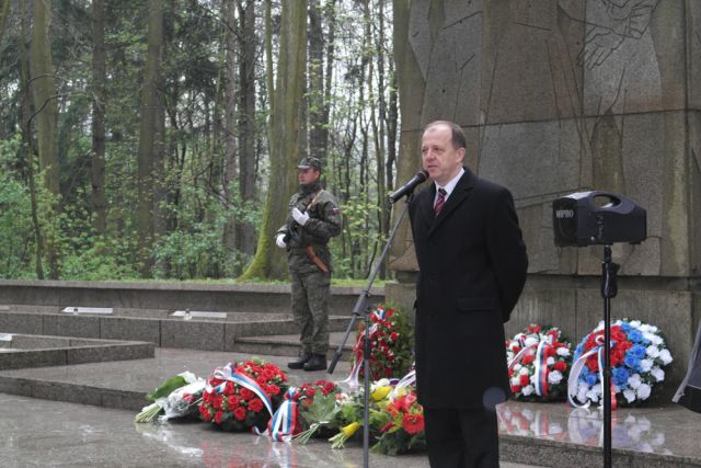 Profesionálni vojaci z trenčianskych vojenských útvarov si vypočuli príhovory primátora mesta i zástupcu Slovenského zväzu protifašistických bojovníkov a spoločne vzdali úctu umučeným vojakom počas Slovenskej hymny v podaní vojenskej hudby.