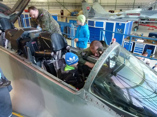 Hneď po príchode na letisko sa žiaci tešili na kynologickú ukážku práce psovodov s vojenskými cvičnými psami, po ktorých nasledovala biologická ukážka ochrany letiska. Hlavnú úlohu sokoliarskej ukážky zohral Kaňúr okrúhlochvostý, ktorého akrobatické kúsky a lovecké schopnosti mohli žiaci sledovať priamo na letisku. Po uvedených ukážkach sa všetci presunuli k leteckej technike, na ktorú sa tešili najmä tí starší. Radosť mali hlavne z toho, že si mohli vyskúšať, aké je to byť pilotom stíhačky MiG-29. Keď sa všetci zúčastnení vystriedali, premiestnili sa k vojenskej hasičskej jednotke. Tu ich zástupca veliteľa hasičov oboznámil s činnosťou vojenských hasičov  a s využitím hasičských pracovných nástrojov a prostriedkov.