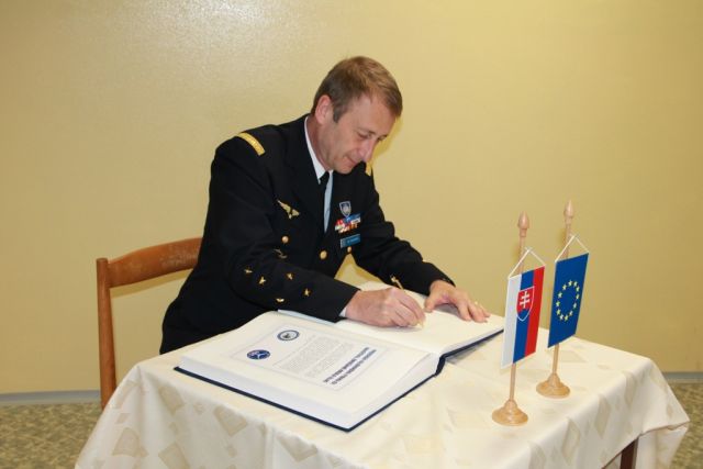 Návštevu v zmiešanom krídle predseda vojenského výboru EÚ ukončil zápisom do kroniky útvaru.