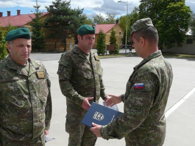 Zástupca veliteľa odovzdal pamätné listy pri príležitosti ukončenia činnej vojenskej služby rotmajstrovi Petrovi Olejníkovi a rotnému Petrovi Audymu a kapitánovi Lapinovi ktorý bude v OS SR slúžiť ďalej.