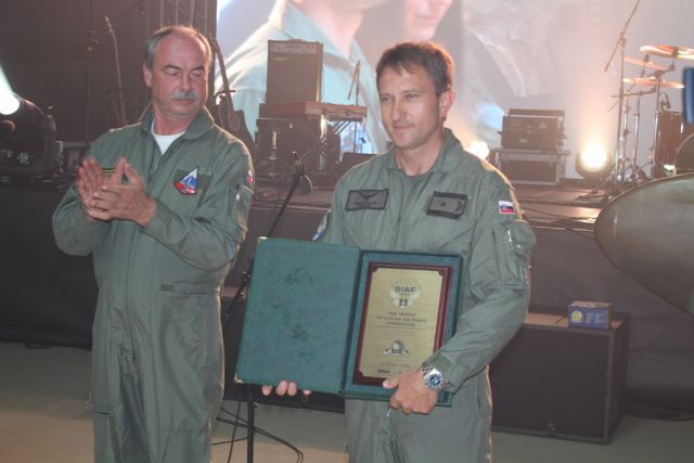 Cenu veliteľa Vzdušných síl OS SR udelenú za najlepšiu vojenskú letovú ukážku si zo Sliača tento rok odnáša pilot bojového lietadla JAS 39 Gripen Vzdušných síl českej armády.