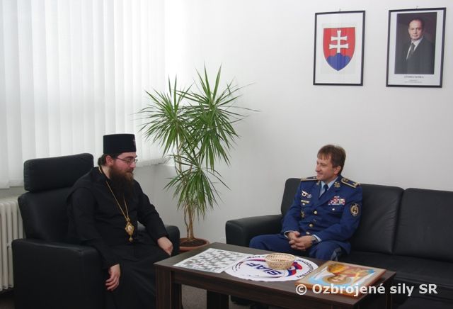Na pôde veliteľstva ho privítal veliteľ vzdušných síl brigádny generál Miroslav Korba, ktorému sa počas krátkeho stretnutia poďakoval za prijatie a možnosť vykonávať kňazské rekolekcie pravoslávnych duchovných stredného a západného Slovenska v kaplnke veliteľstva a priestoroch vojenského dekanátu. Na znak svojej úprimnej vďaky Jeho Blaženosť Rastislav veliteľovi vzdušných síl daroval ikonu svätého archanjela Michala, patróna pilotov a vzdušných síl s venovaním.