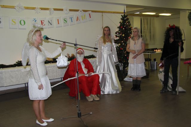 Na stretnutí prítomní privítali postupne dvoch anjelikov - moderátorov a tiež dvoch čertov, keďže malých nezbedníkov bolo neúrekom. Napokon sa dostavil aj Mikuláš v sprievode anjela - umelkyne a dvoch ženistov – strážcov sladkých prekvapení pre deti. Mikulášovi sa postupne všetkých 46 detičiek odvážilo niečo zarecitovať alebo zaspievať a mohli si rozbaliť svoju balíčkovú odmenu. V rámci Mikulášskej pošty tiež nakreslili svoje priania Ježiškovi a počas diskotéky si zatancovali s prítomnými postavičkami.