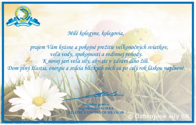 Veľkonočný pozdrav veliteľa Vzdušných síl OS SR