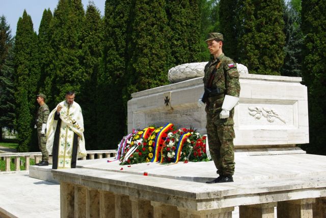 Pietny akt kladenia vencov pri Pamätníku Rumunskej armády na vojenskom cintoríne vo Zvolene