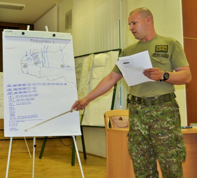 Zvýšiť odbornú pripravenosť príslušníkov veliteľstva 1. mechanizovanej brigády a veliteľov priamo podriadených súčastí na plnenie úloh počas vedenie ofenzívnych aktivít mechanizovanej brigády bolo hlavnou úlohou Spoločnej veliteľskej prípravy, ktorá sa konala dňa 15. júna v priestoroch posádkového klubu Jaselských kasárni Topoľčany.