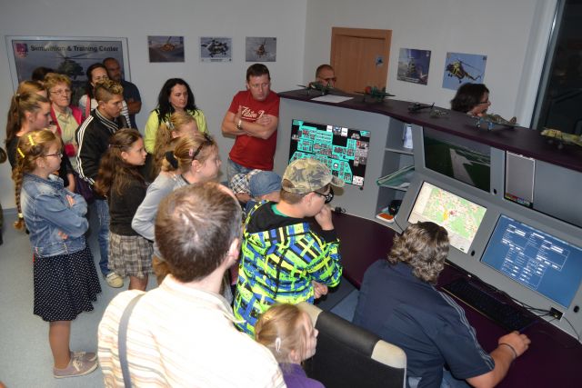 Program, ktorý bol pripravený pre túto vzácnu návštevu, otvoril úvodným slovom veliteľ útvaru plukovník Róbert Tóth. Po privítaní detí im vysvetlil v krátkej prezentácii úlohy a činnosť útvaru. Leteckú techniku si už mladí umelci mohli pozrieť zblízka počas statickej ukážky vrtuľníka Mi-17 LPZS, či počas ukážky technických prác na vrtuľníku Mi-17 M a Mi-17 LPZS. Najväčšou atrakciou pre všetkých návštevníkov bol simulátor Mi-17 MODER, na ktorom trénujú vojenskí piloti v rámci absolvovania leteckého výcviku. Ako odmenu za ich tvorivé umelecké práce mohli hostia vyskúšať riadenie vrtuľníka počas simulovaného letu a zažiť pocity pilota počas vykonávania manévrov. Po tomto zážitku sme sa presunuli do priestorov letiskového klubu, kde bola vyhodnotená súťaž „Deti maľujú vojakov“.