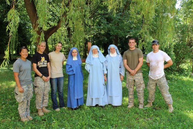 V čase návštevy kadetov prišla požiadavka od Mariánskych sestier z kláštora v obci Drienovec o pomoc pri rúbaní dreva na zimu a revitalizáciu okolia kláštora. Napriek vysokým vonkajším teplotám s veľkým nadšením uvítali aj túto „úlohu“, ktorú výborným spôsobom spoločne príslušníci práporu rchbo a kadeti USA splnili, čo svojimi slovami uznania ocenili aj prítomné rádové sestry vo viacerých jazykoch ( francúzsky, nemecky, anglicky).