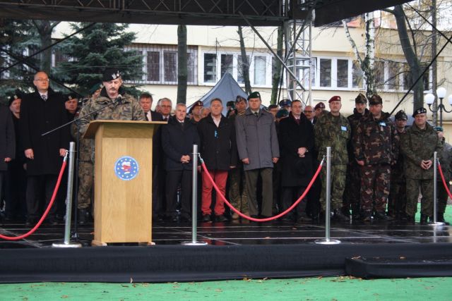 Dvadsaťpäť príslušníkov ozbrojených síl Slovenskej republiky pôsobiacich v rámci cvičenia COMMON CHALLENGE 2015 na operačnom veliteľstve (OHQ) určenom na riadenie Bojovej skupiny Európskej únie krajín V4 (V4 EU BG) sa dňa 18. novembra 2015 zúčastnilo na slávnostnom otvorení veliteľstva V4 EU BG.