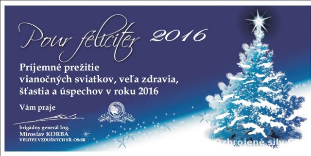 S nastávajúcim záverom plynúceho roku, Vám chcem všetkým poďakovať za kvalitne a zodpovedne odvedenú prácu, odhodlanie a pomoc pri plnení náročných úloh v prospech vzdušných síl. Ďakujem Vám za ústretový prístup a Vašu profesionalitu.