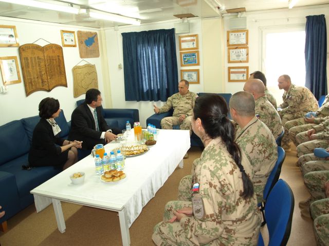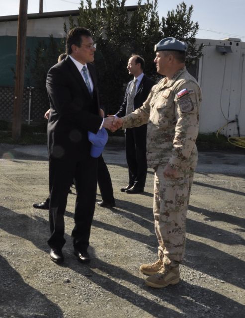 V spoločnosti slovenskej veľvyslankyne na Cypre Oksany Tomovej zavítal na veliteľstvo misie UNFICYP v Nikózii, kde sa v tábore Tatry, cyperskom domove slovenských ženistov, stretol na krátkej besede so slovenskými vojakmi pôsobiacimi na veliteľstve ako aj v sektore 4. Významnú návštevu privítal  veliteľ Sektoru 4 podplukovník Miroslav Belanský a hlásenie pred nastúpenou jednotkou podal podplukovník Jozef Paňko. Nasledovala krátka diskusia s vojakmi, kde veliteľ informoval pána Šefčoviča o priestore slovenského kontingentu v rámci misie UNFICYP a aktuálnych operačných úlohách. Eurokomisár sa veľmi živo zaujímal o súčasné úlohy slovenských vojakov na Cypre a zároveň vyzdvihol ich prácu, ktorou veľmi dôstojne reprezentujú Ozbrojené sily SR v rámci medzinárodného spoločenstva.