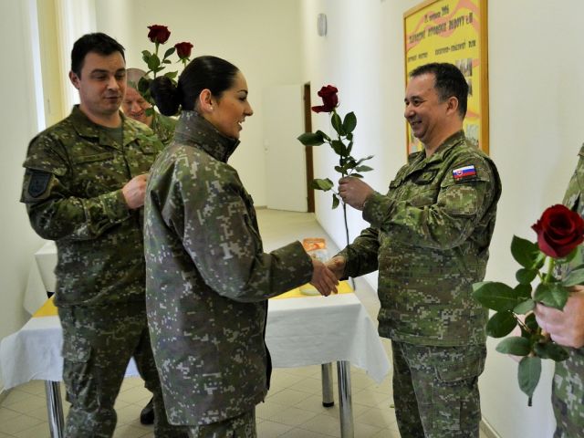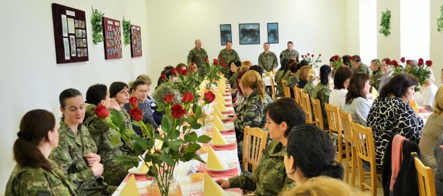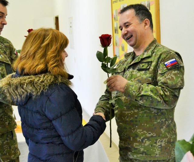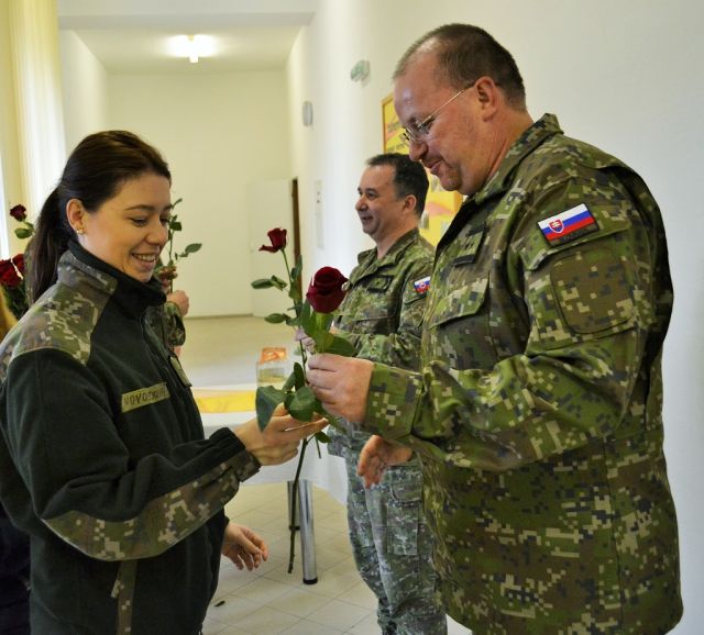 Táto slávnostná chvíľa bola spojená s podaním slávnostného obeda, ktorý zabezpečovali profesionálni vojaci roty podpory velenia Veliteľstva 1.mb. Takmer šesťdesiat pozvaných žien si z rúk veliteľov oboch útvarov prevzali červenú ružu ako symbol vďaky a úcty ku všetkým ženám.