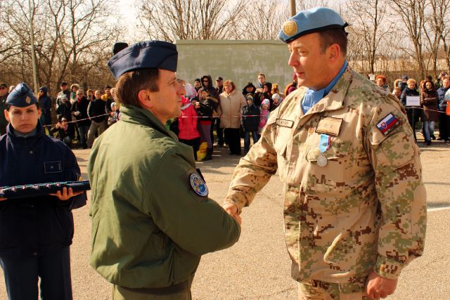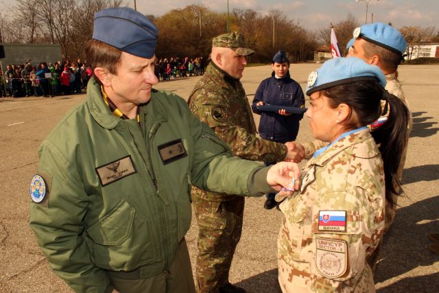 Slová uznania a vďaky za odvedenú prácu, profesionalitu a nasadenie príslušníkov vracajúcej sa jednotky UNFICYP zazneli z príhovorov Veliteľa Vzdušných síl OS SR brigádneho generála Miroslava Korbu, Vedúceho oddelenia starostlivosti o vojnových veteránov a vojenských dôchodcov plukovníka v zálohe Ing. Richarda Zimányiho ako aj Veliteľa rotujúcej jednotky UNFICYP podplukovníka Jozefa Paňka.