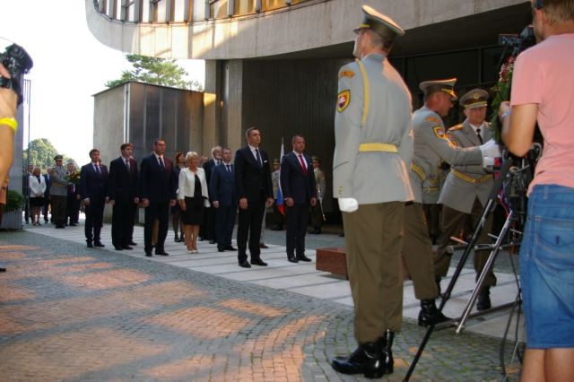 Na oslavách v Banskej Bystrici sa zúčastnil aj prezident SR a hlavný veliteľ Ozbrojených síl SR Andrej Kiska, predseda Národnej rady SR Andrej Danko, predseda vlády SR Róbert Fico a náčelník Generálneho štábu Ozbrojených síl SR generál Milan Maxim.