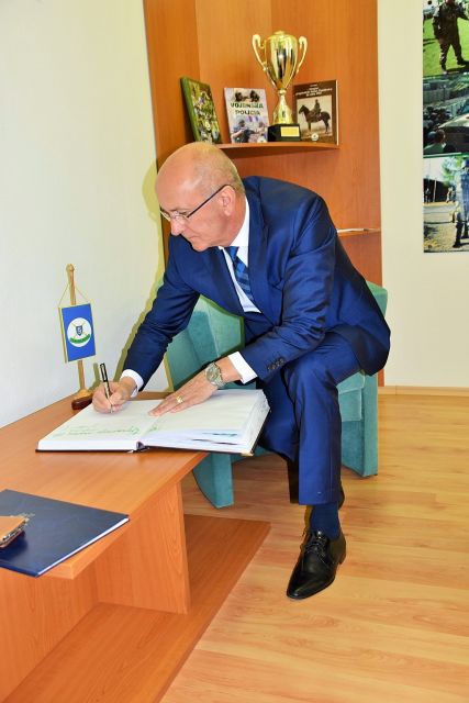 Novému riaditeľovi prišiel osobne poblahoželať aj bývalý riaditeľ Vojenskej polície plukovník Ing. Milan Hamar, PhD.