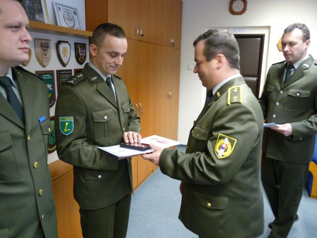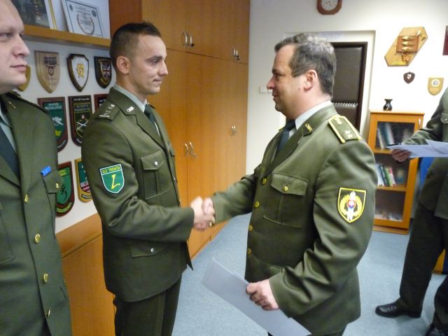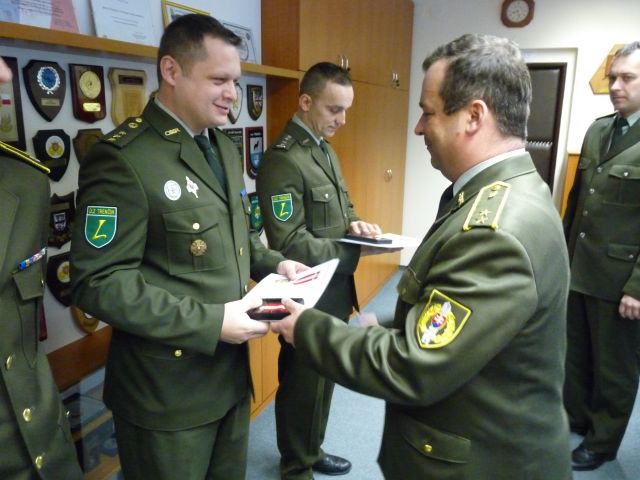 Po prečítaní priebehu služby v Ozbrojených silách SR odovzdal odchádzajúcim profesionálnym vojakom podplukovník Ing. Martin Ržonca „Pamätný odznak veliteľa Úradu logistického zabezpečenia OS SR.