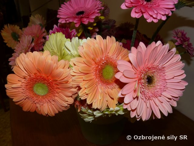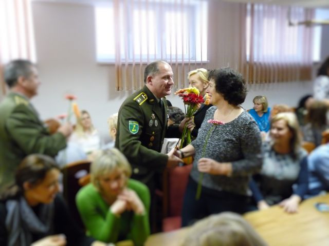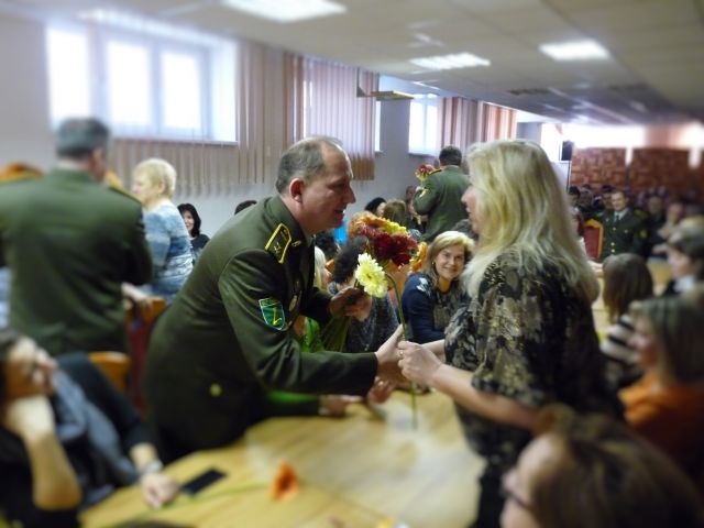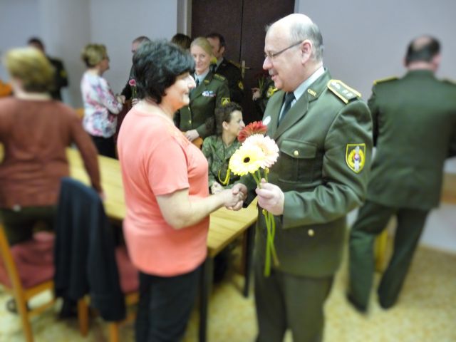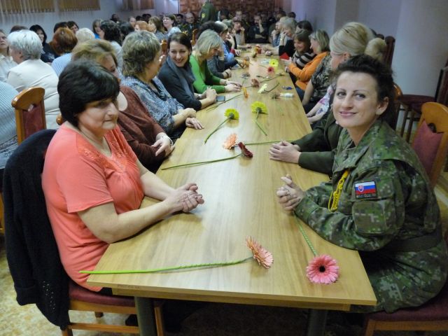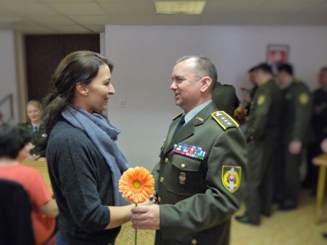 Veliteľ s náčelníkom štábu a náčelníkmi odborov odovzdal kytice prítomným dámam a zaželali k sviatku šťastie, lásku a mnoho pracovných úspechov v práci.