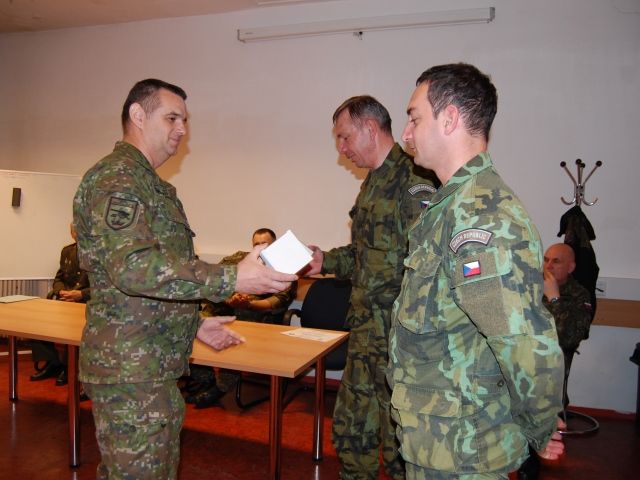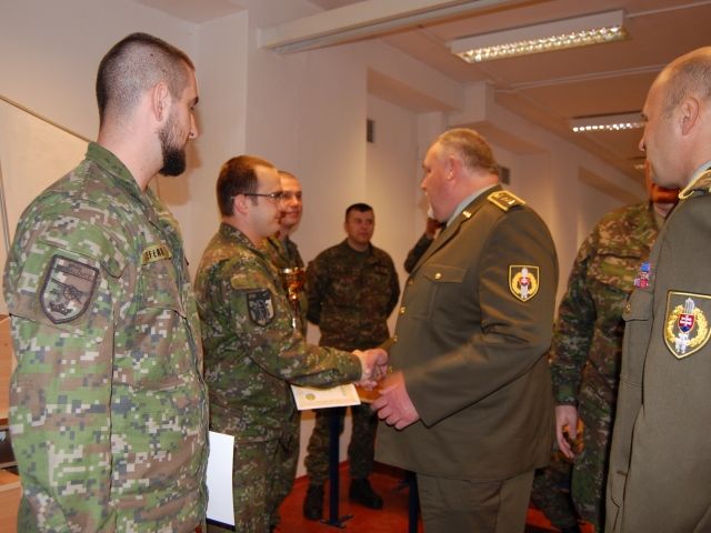 Putovný pohár a ocenenia najlepším odovzdal plukovník generálneho štábu Karol Navrátil, zástupca veliteľa PS OS SR. Ku gratulantom sa pripojil aj plukovník Ľubomír Matta, prorektor pre vojenské veci Akadémie ozbrojených síl (všetci traja ocenení sú absolventmi AOS).
